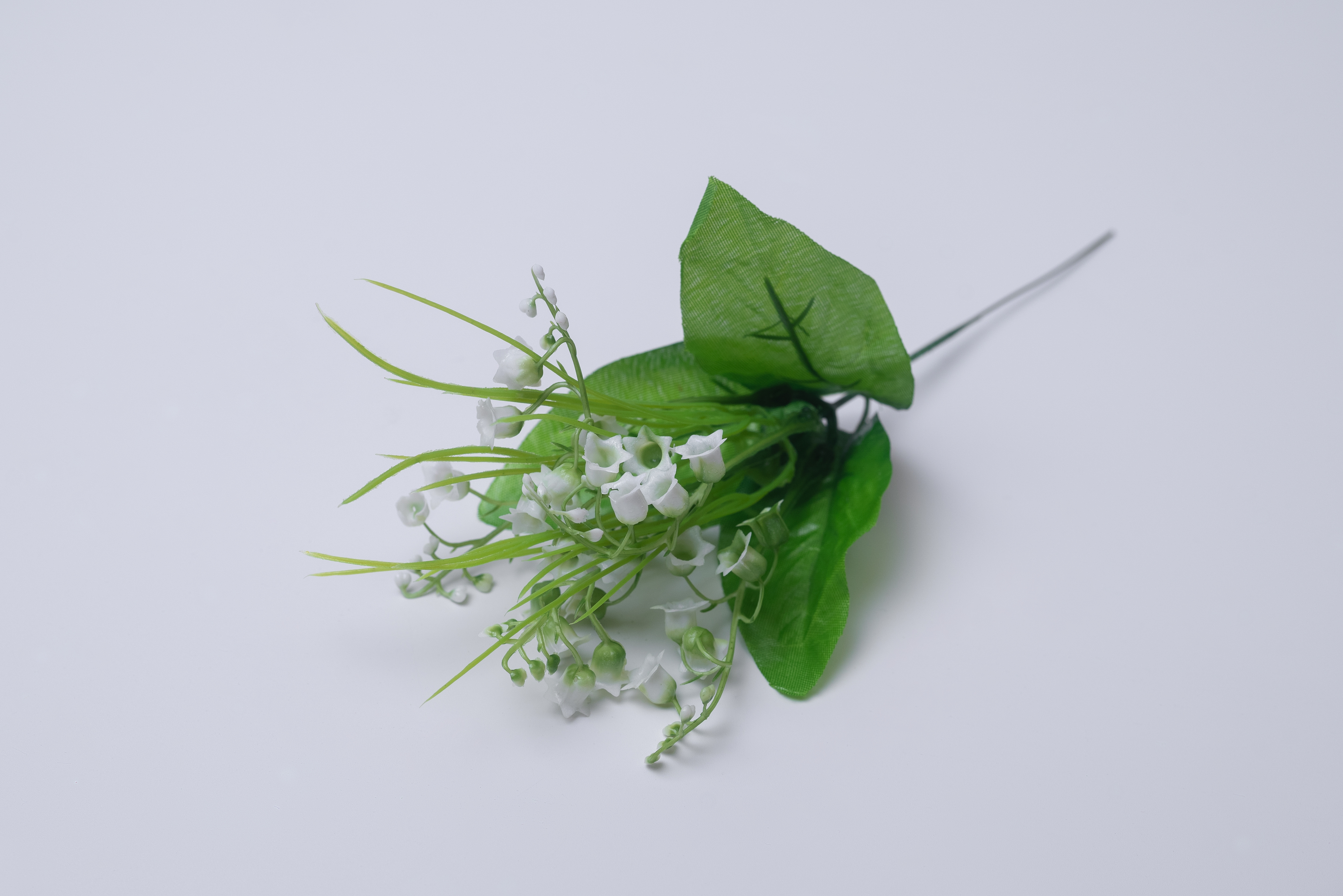 Б-164 Ветка в букете Ландыш пластм. с шелк листом 4 вет h=26 см 1/20